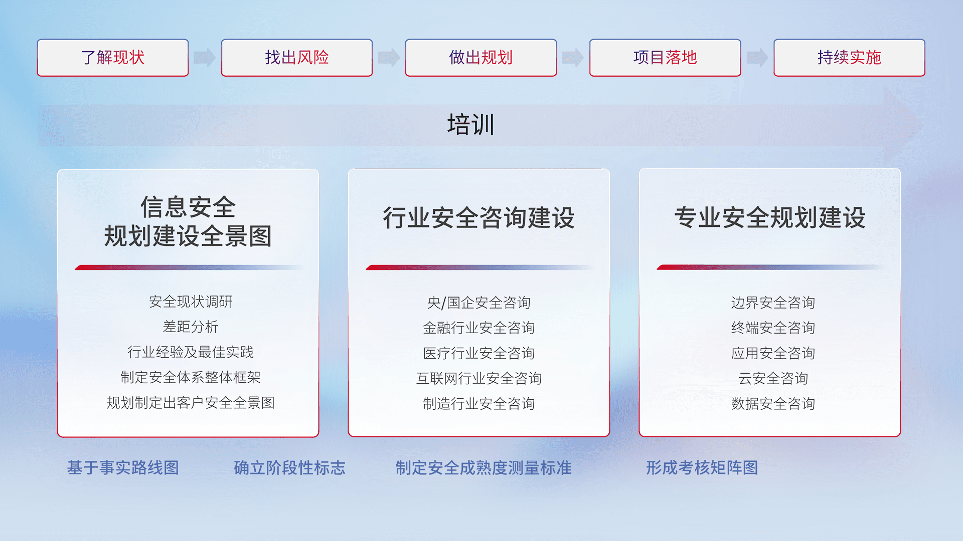 通过专业的法律咨询解读、、、合规架构体现、、、差异化解决方案、、、、测试实施支持等服务,,,,为客户量身打造等保合规体系。。